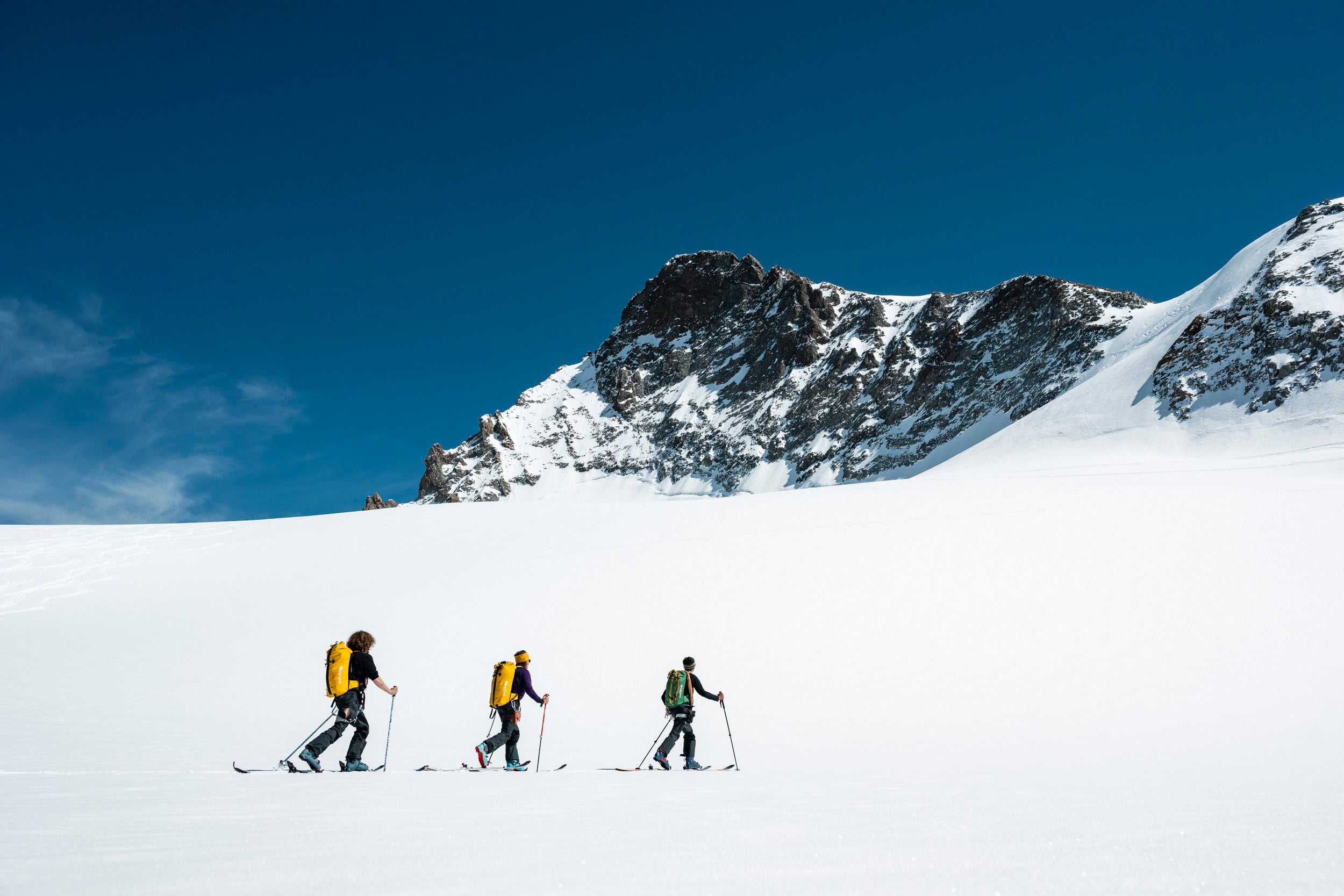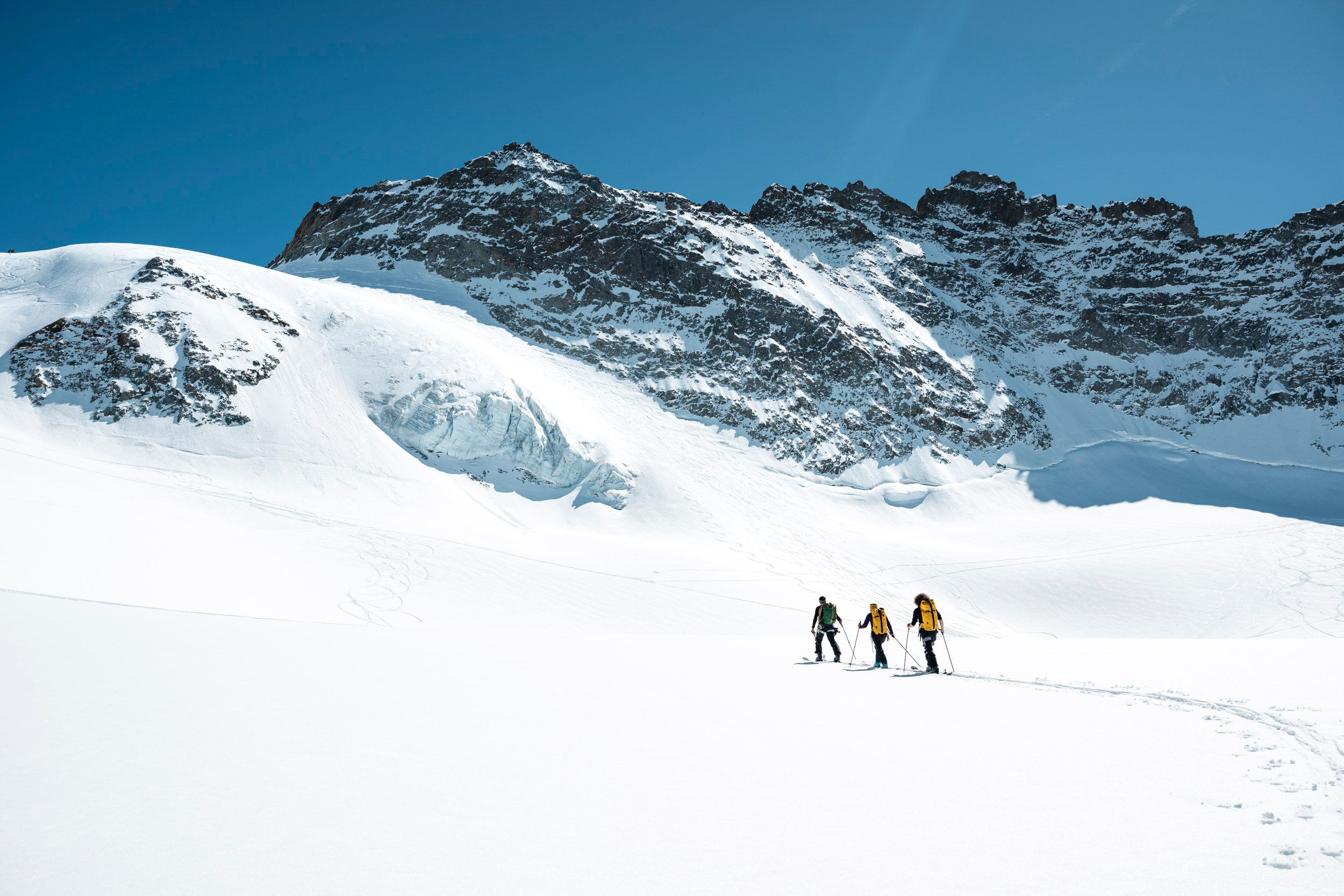 C’est ici, aux portes du ciel, que nos vêtements prennent tout leur sens. Conçus pour durer, ils sont le trait d'union entre l'humain et l'élément sauvage. Sur ce terrain non balisé, où la montagne est restée souveraine, la technicité devient une alliée de la liberté. Entre les séracs et les moraines, nous traçons des lignes éphémères sur un glacier millénaire, conscients de la fragilité de ce royaume de cristal qu'il nous appartient de protéger.