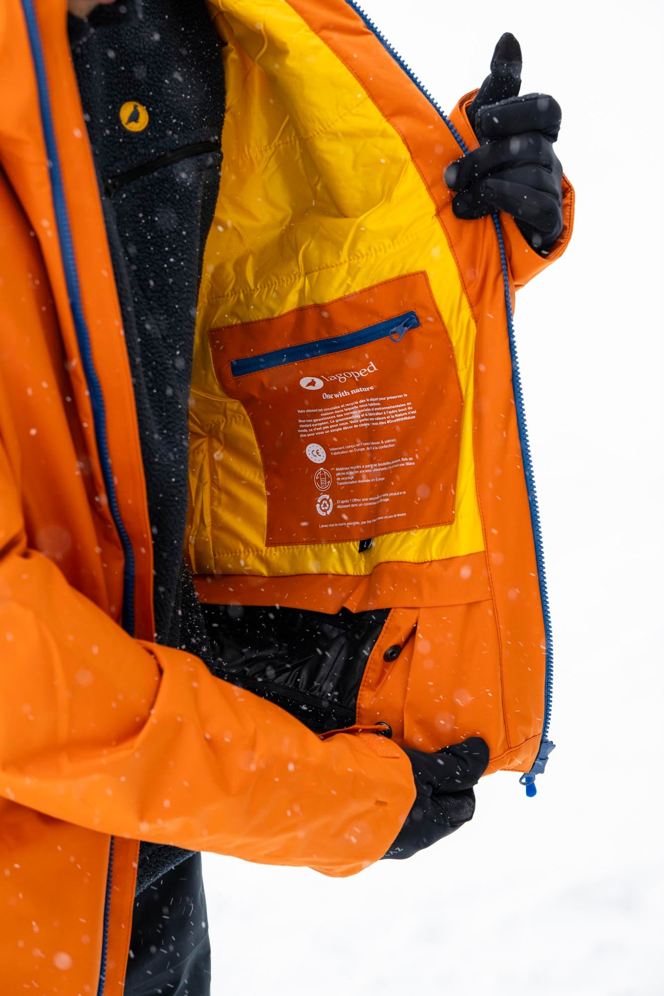"Je skie tout l'hiver avec ma veste bien chaude et légère. J'aime particulièrement sa jupe pare-neige amovible et la poche forfait cachée à l'intérieur de la manche pour pouvoir la porter une fois descendu de la station" Paul - skieur